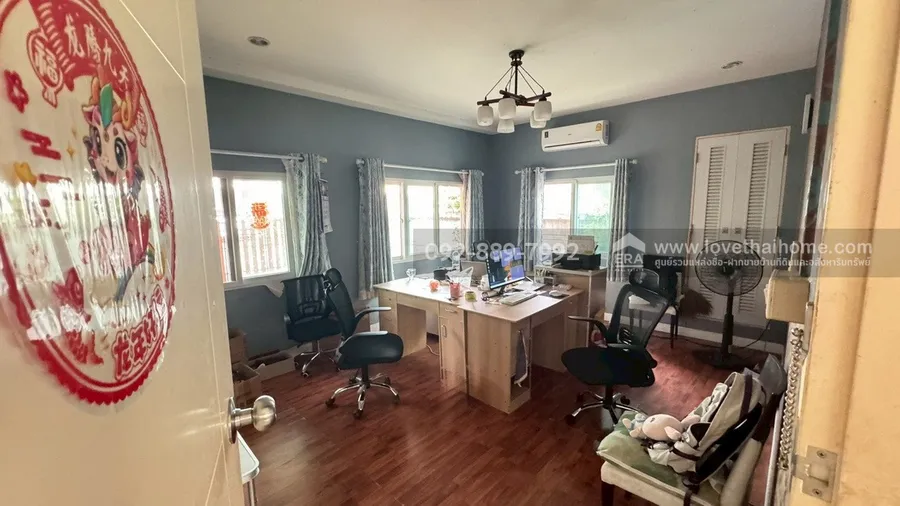 - มี 4 ห้องนอน 3 ห้องน้ำ 1 ห้องรับแขก 1 ห้องครัว แอร์ 4 เครื่อง จอดรถ 2 คัน