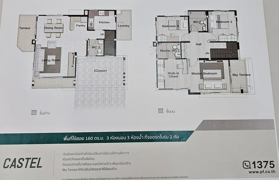 เนื้อที่ 64 ตร.ว. พื้นที่ใช้สอย 160 ตร.ม. (3 นอน 3 น้ำ)