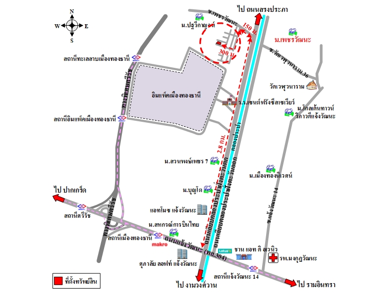ถนนผ่านหน้าทรัพย์สิน ได้แก่ ซอยหมู่บ้านเพชรวัฒนะ ปากเกร็ด ซอย 2/1 ง เป็นทางในโครงการจัดสรรที่ได้รับอนุญาตแล้ว ผิวจราจรคอนกรีต กว้างประมาณ 6 ม. เขตทางกว้างประมาณ 8 ม.