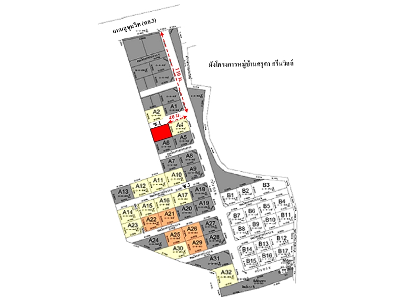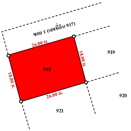 ที่ดินเป็นรูปสี่เหลี่ยมผืนผ้า ขนาดแปลงที่ดินด้านทิศหนือติดถนน กว้างประมาณ 26 ม. ลึกประมาณ 18 ม.