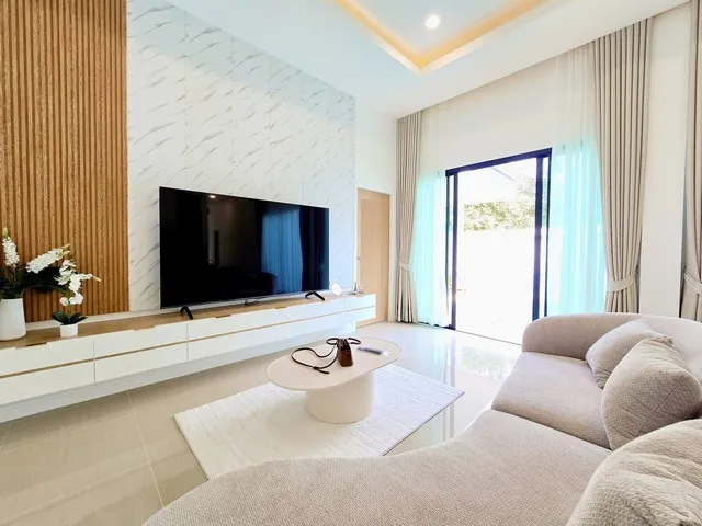 บ้านพร้อมสระว่ายน้ำส่วนตัว ใกล้ สวนสาธารณะอ่างเก็บน้ำมาบประชันเพียง 800 เมตร