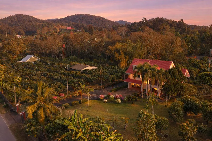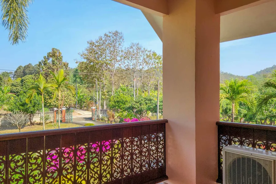 พื้นที่โดยรอบเต็มไปด้วยสวนขนาดใหญ่ ต้นไม้โตเต็มวัย สวนลำไยให้ผลผลิต และระเบียงชมวิวภูเขา สร้างบรรยากาศแบบรีสอร์ทส่วนตัว ภายในบ้านโปร่งสว่างด้วยแสงธรรมชาติ และใช้วัสดุคุณภาพ เช่น ประตูหน้าต่างไม้สัก พื้นไม้ชั้นบน และพื้นหินอ่อนชั้นล่าง ให้ความรู้สึกแข็งแรงและคลาสสิก
