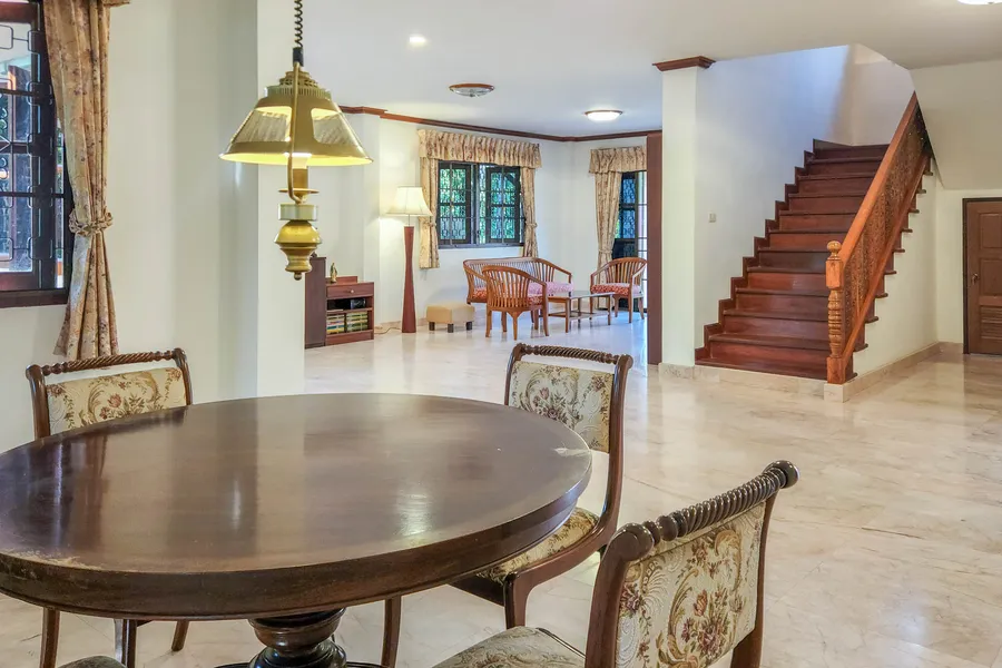 The grounds feature a large landscaped garden and a productive longan orchard, reflecting a genuine country-living atmosphere. The solid three-storey main house is bright and well laid out, complemented by a separate second house within the same property, providing additional living space and privacy—ideal for a full time grounds keeper and house helper or additional storage space.