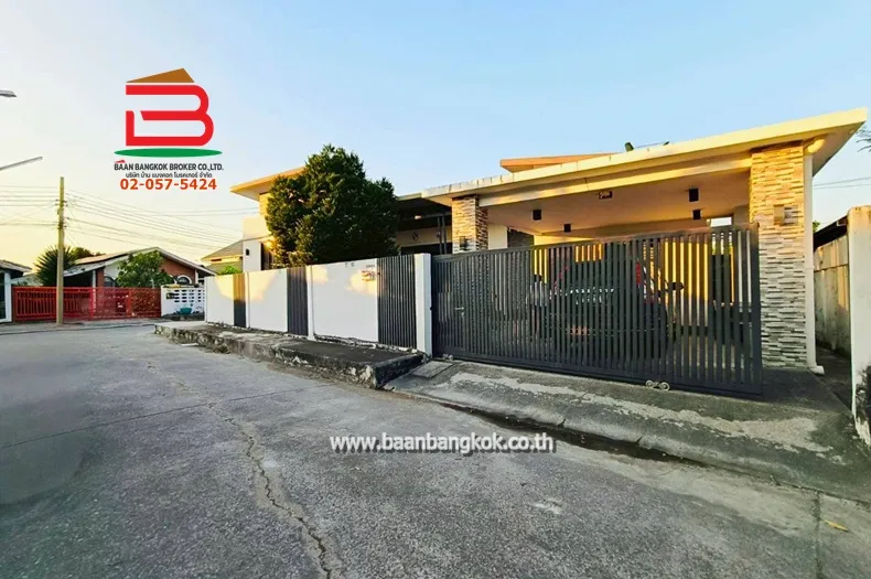 บ้านเดี่ยว หมู่บ้านประชาชื่น (ใกล้มหาวิทยาลัยธุรกิจบัณฑิตย์) เนื้อที่ 72 ตรว. ตำบลบางตลาด อำเภอปากเกร็ด จังหวัดนนทบุรี