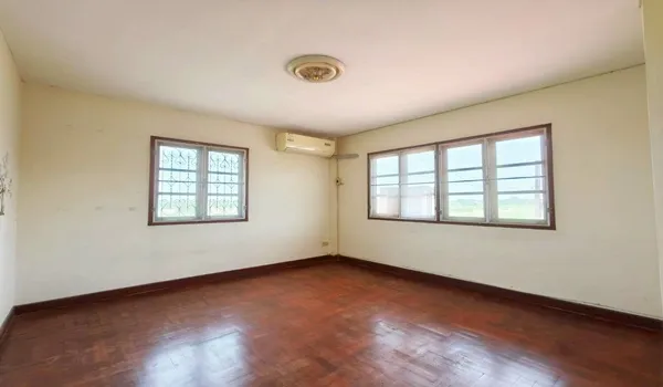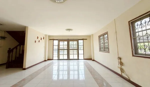 ประเภททรัพย์สิน : บ้านเดี่ยว 2 ชั้น หลังริม มี 3 ห้องนอน 2 ห้องน้ำ 1 ห้องครัว 1 ห้องโถงรับแขก 1 ห้องทำงาน 1 ห้องทานอาหาร ชั้นบนพื้นเป็นไม้ปาร์เก้ ชั้นล่างปูด้วยกระเบื้อง ติดมุ้งลวด, เหล็กดัด, แอร์ 3 เครื่อง มีระเบียงและจอดรถในบ้านได้ 1 คัน ในหมู่บ้านเงียบ หมู่บ้านติดกับสถานีรถไฟไทย สถานีคลองหลวงแพ่ง เป็นแหล่งชุมชนใกล้สิ่งอำนวยความสะดวก และสนามบินสุวรรณภูมิ