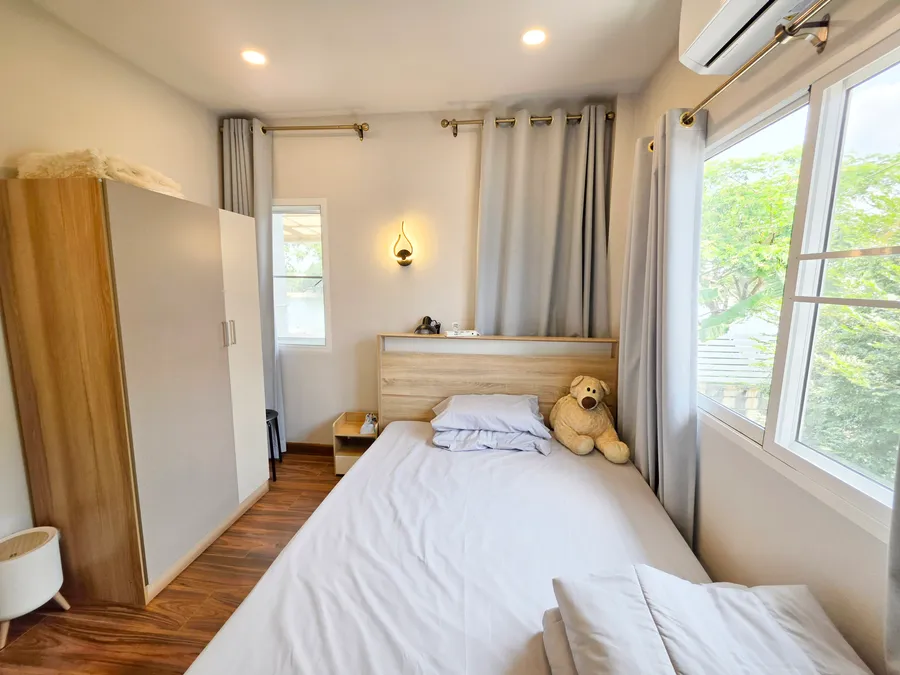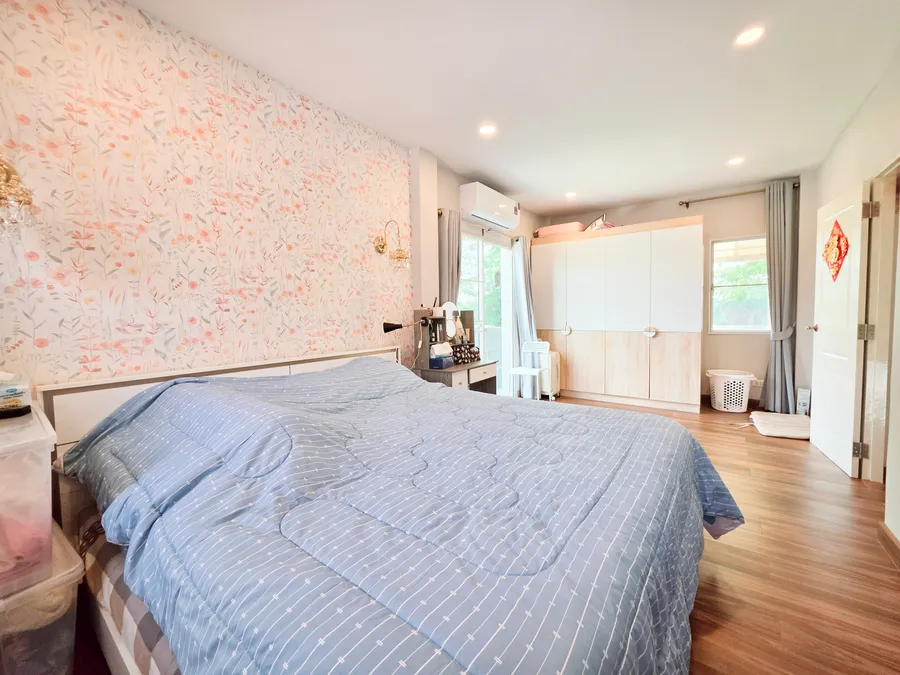 บ้านเดี่ยว หลังมุม พื้นที่กว้าง หมู่บ้าน เซนโทร วัชรพล เปลี่ยนพื้นชั้น 2 ใหม่ทั้งหมด ต่อเติมห้องด้านข้าง พร้อมพื้นที่สวน และพื้นที่ชมวิว เปิดรับลมสำหรับพักผ่อน