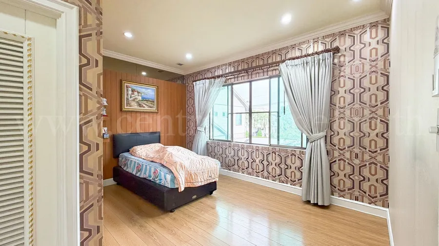 - 4 ห้องนอน, 5 ห้องน้ำ, 1 ห้องรับแขก, 1 ห้องรับประทานอาหาร, 1 ห้องครัวไทย, 1 ห้องครัวฝรั่ง, 1 ห้องแม่บ้าน, 2 ที่จอดรถ