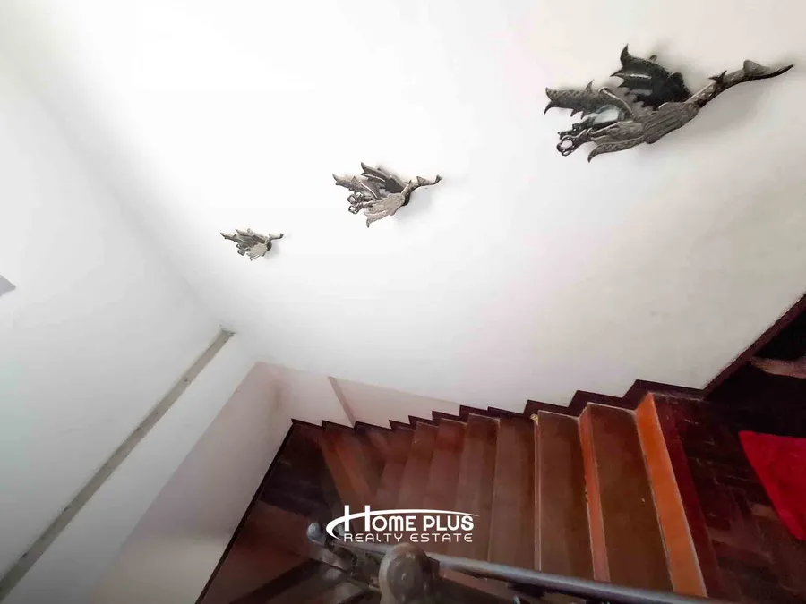 ชั้นล่าง ปูพื้นหินอ่อน ฝ้าหลุม มีการต่อเติมหลังคาที่จอดรถและพื้นที่รอบบ้าน รวมถึงต่อเติมครัว