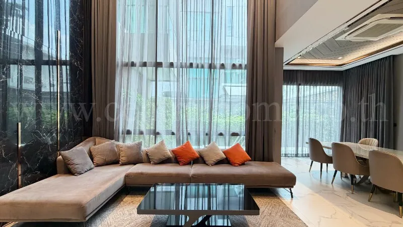 - ม่านกรองแสงไฟฟ้าอัตโนมัติ ควบคุมด้วยรีโมทในโซน Double Volume เพดานสูง 6.6. เมตร โปร่งโล่ง