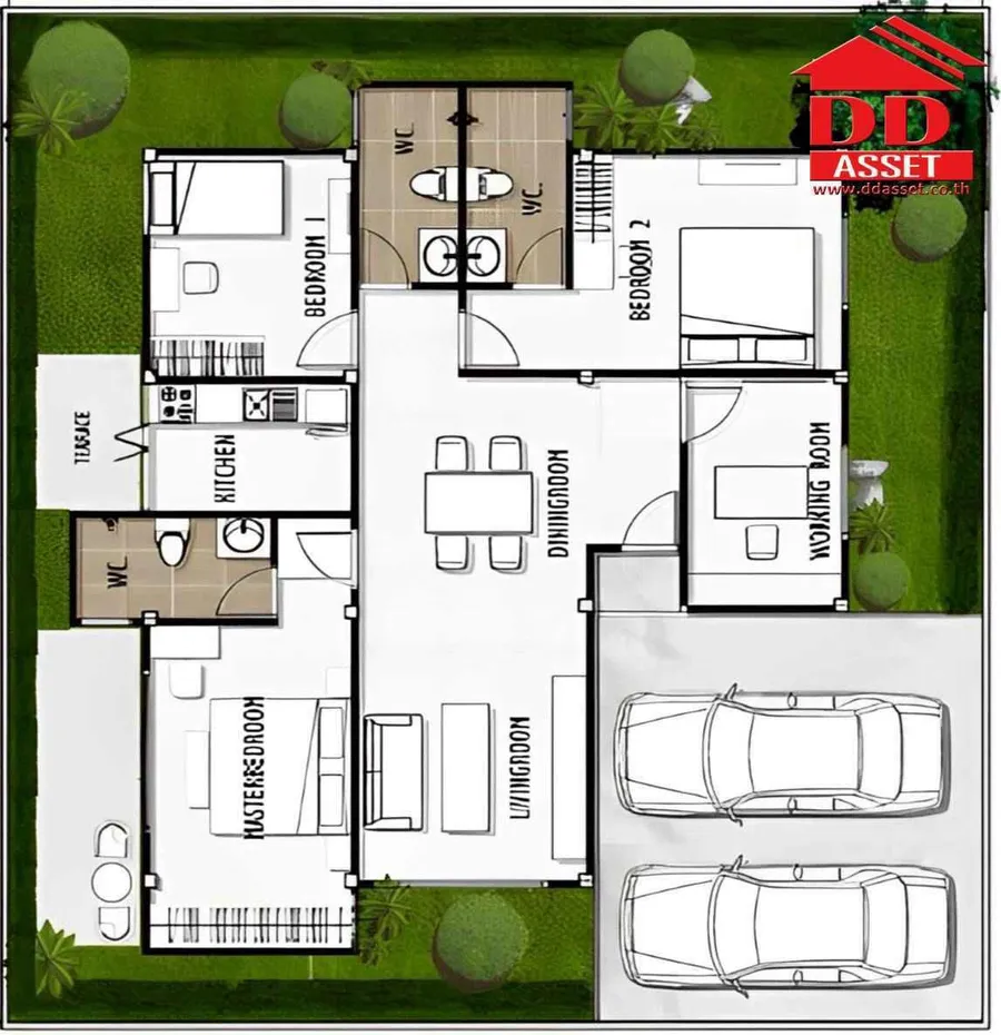 ขนาด : 3 ห้องนอน 3 ห้องน้ำ 2 ที่จอดรถ