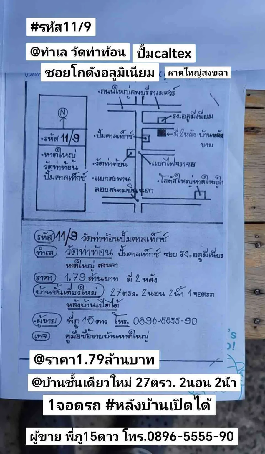 บ้าน​ชั้นเดียว​ใหม่​ วัด​ท่า​ท้​อน​ ปั้ม​คา​ลเท็กซ์​ ซอย​โกดัง​อลูมิเนียม​ หาดใหญ่​ สงขลา #รหัส​11​/9 @ท​ำ​เล​ วัด​ท่า​ท​้​อน​ ปั้ม​คา​ลเท็กซ์​ ซอย​โกดัง​อลูมิเนียม​ #หาดใหญ่​ สงขลา @ราคา​1.79​ล้าน​บาท @บ้าน​ชั้นเดียว​ใหม่​ 27​ตรว.​ 2​นอน​ 2​น​้ำ​ 1​จอด​รถ​ #หลัง​บ้าน​เปิด​ได้ @ผู้​ขาย​ #พี่​ภู​15​ดาว​ โทร.​0896-5555-90​ และ​0896-5555-45​โอ​เฟื่องฟ้า​หนาม @@@@@@@@@@@@@@@@@@ @เพจ​ คู่มือ​ซื้อขาย​บ้าน​หาดใหญ่ @เห็น​โอกาส​เป็น​ข้าวเปลือก​คุณ​คือ​ไก่​ได้​พลอย​ เห็น​โอกาส​เป็น​พลอย​คุณ​คือ​คน​ฉลาด.. 555​ค​ำ​คม​ตา​กิ้ง​อยู่​ค​้​ำ​ฟ้า​
