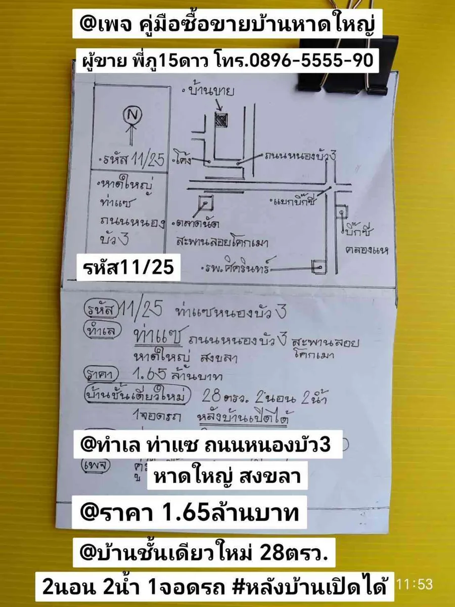 บ้านชั้นเดียวใหม่ สะพานลอยโคกเมา หาดใหญ่ สงขลา