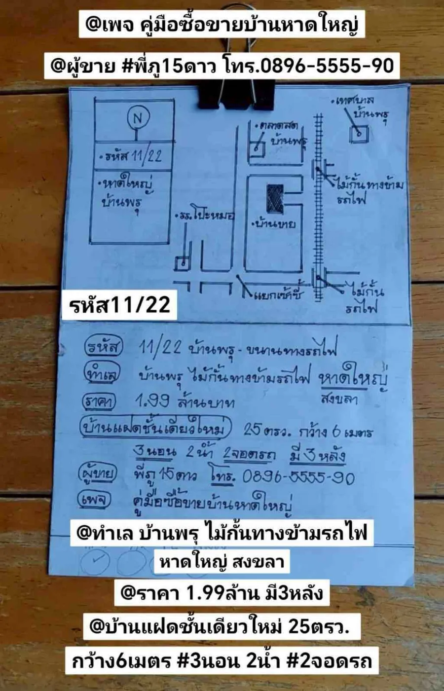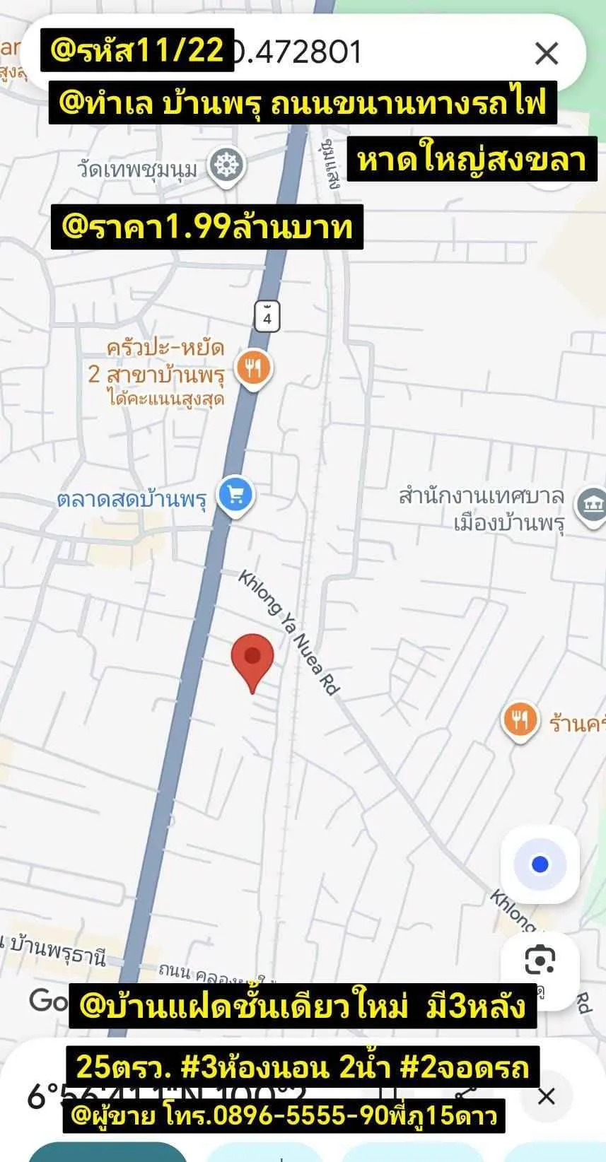 บ้าน​แฝด​ชั้น​เดียว​ใหม่​ มี​3​หลัง บ้าน​พรุ​ ไม้​กั้น​ทางข้าม​รถไฟ​ หาดใหญ่​ สงขลา @รหัส​11​/22 @ทำ​เล​ บ้าน​พรุ​ ไม้​กั้น​ทางข้าม​รถไฟ​ หาดใหญ่​ สงขลา @ราคา​1.99​ล้าน​บาท @บ้าน​แฝด​ชั้น​เดียว​ใหม่​ มี​3​หลัง​ 25​ตรว.​ กว้าง​6​เมตร​(มาก​)​ #3​ห้อง​นอน​ 2​น​้ำ​ 2​จอด​รถ​ @ผู้​ขาย​ #พี่​ภู​15​ดาว​ โทร.​0896-5555-90​ และ​ 0896-5555-45​โอ​เฟื่องฟ้า​หนาม @@@@@@@@@@@@@@@@@@@ @ชีวิต​ต้อง​มี​ค​ำ​คม​ เหมือน​กิน​ลูก​ชิ้น​ปิ้ง​ต้อง​มี​น​้ำจิ้ม... (15​ดาว​โครงการ​ค​ำ​คม​ตา​กิ้ง​อยู่​ค้ำ​ฟ้า)​