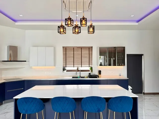 ครัวยุโรปขนาดใหญ่ + ไอซ์แลนด์หินอ่อนกลางบ้าน