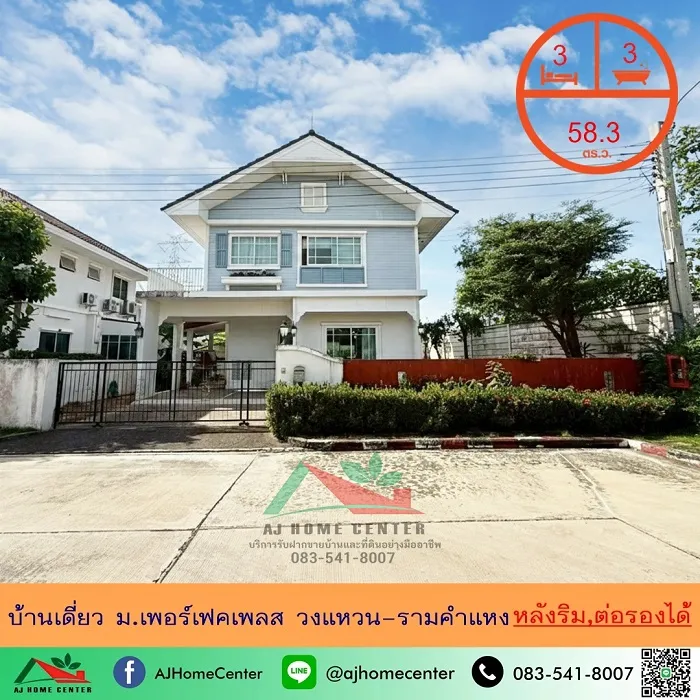 ขายบ้านเดี่ยว58.3ตรว. หลังริม ม.เพอร์เฟคเพลส วงแหวน-รามคำแหง ราคาพร้อมคุย