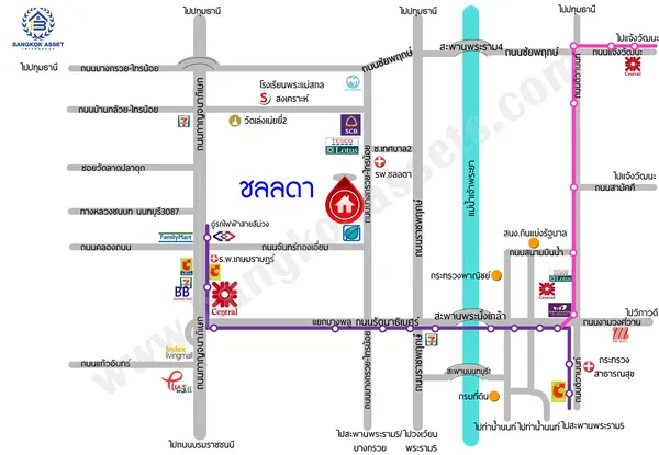 - ใกล้โรงพยาบาลเกษมราษฎร์ รัตนาธิเบศร์, โรงพยาบาลบางบัวทอง, โรงพยาบาลชลลดา