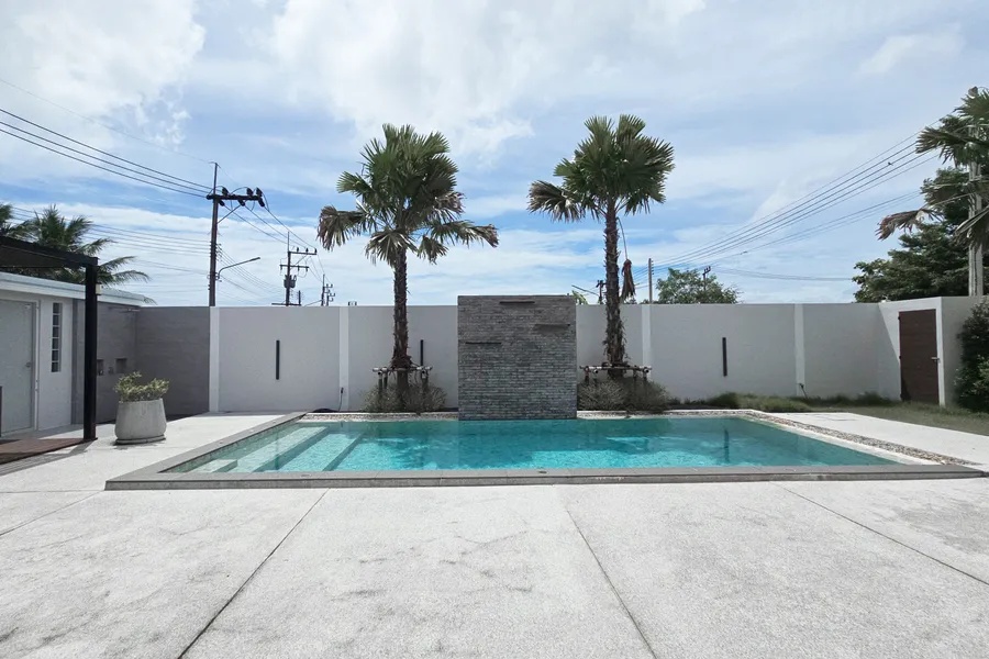 🔹 สระว่ายน้ำส่วนตัวขนาด 4×8 ม. (น้ำล้น + ม่านน้ำตก + สปา)