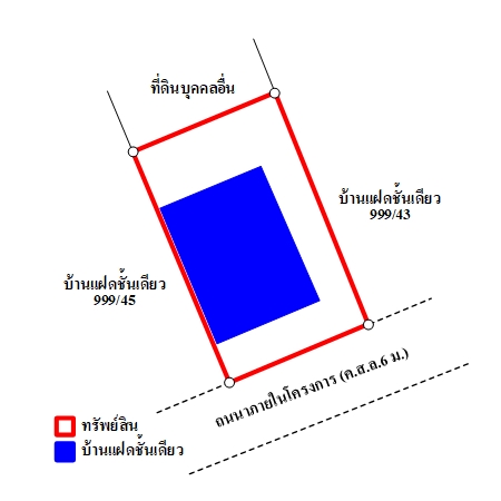 บสส. รับโอนกรรมสิทธิ์สิ่งปลูกสร้างระบุเป็นบ้านพักอาศัยแฝดตึกชั้นเดียว เลขที่ 999/44, โรงจอดรถ