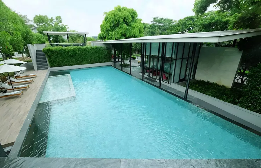 ● สระว่ายน้ำ 1 สระ ระบบเกลือ ขนาด 168 ตร.ม. ลึก 1.2 ม.