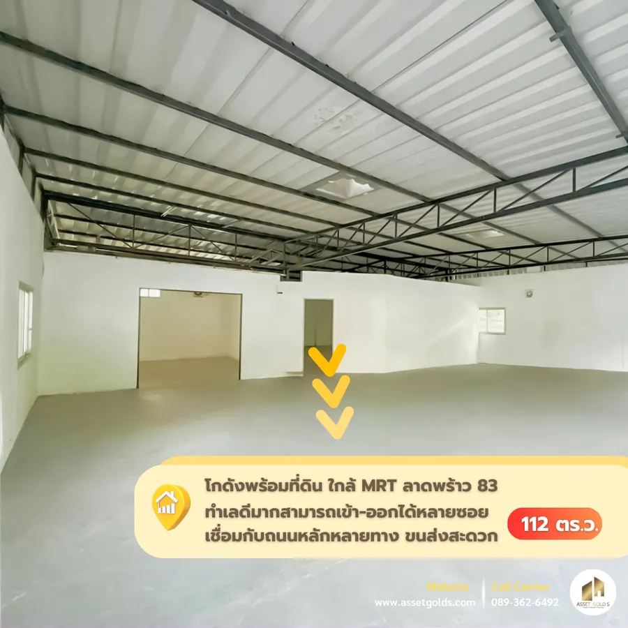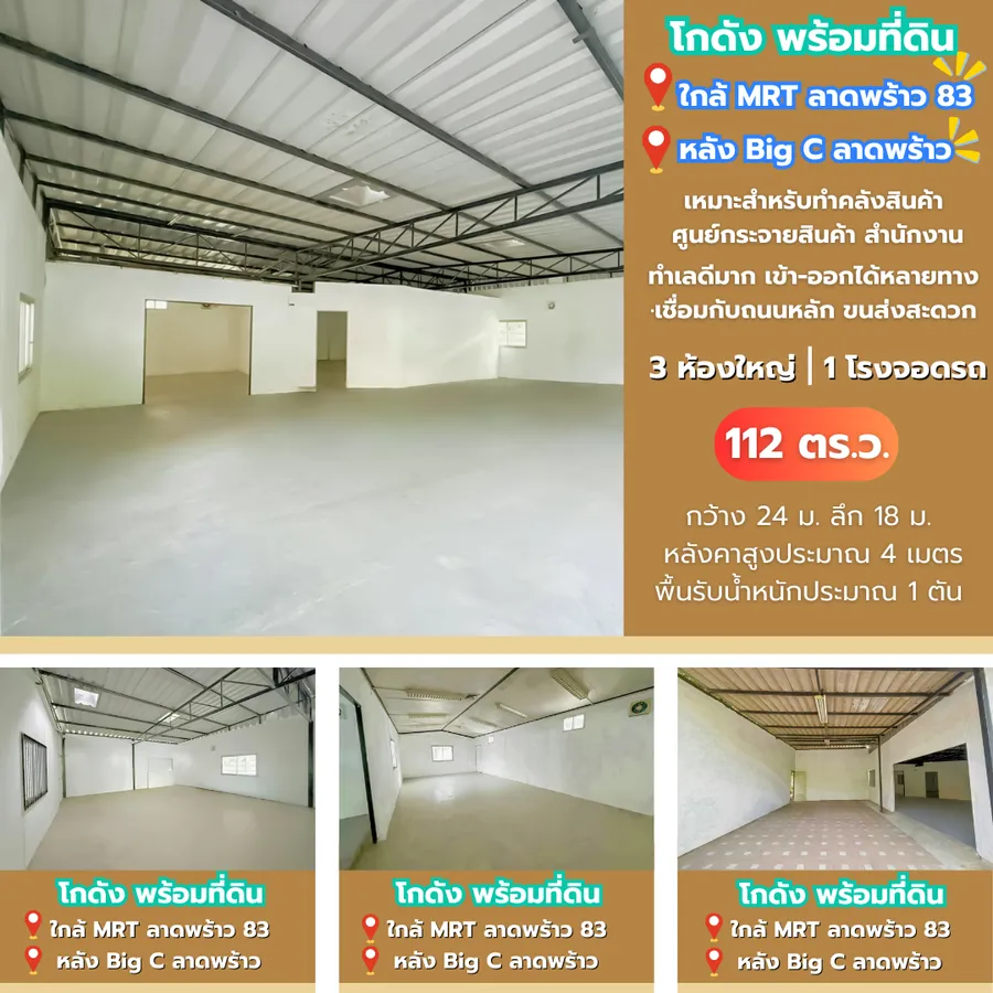 ขายด่วน!! โกดังพร้อมที่ดิน ใกล้ BTS ลาดพร้าว83 ราคาพิเศษ 12.49 ลบ. ‼ พื้นที่ 112 ตร. วา