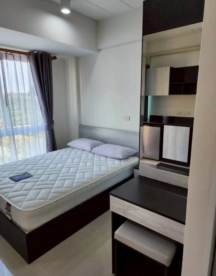 ตกแต่งพร้อมอยู่ : โต๊ะ, เตียง, ตู้, แอร์, เครื่องทำน้ำอุ่น, ตู้เย็น