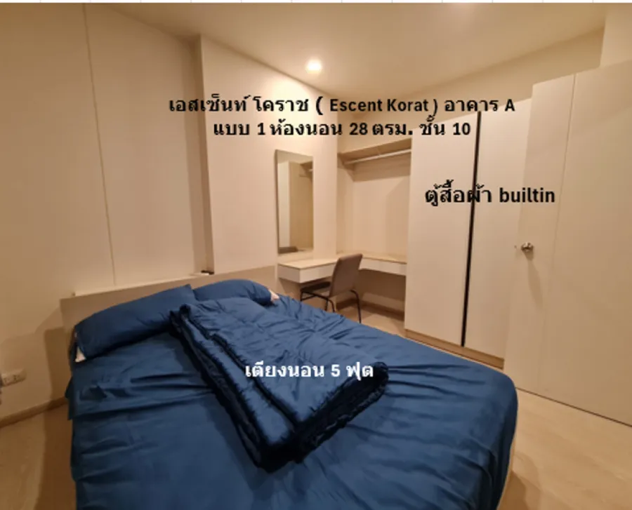 ขาย คอนโด ติดเซ็นทรัลโคราช เอสเซ็นท์ โคราช อาคาร A 28.24 ตรม แบบ 1 bed ชั้น 10 เครื่องอำนวยความสะดวกครบ พร้อมเข้าอยู่