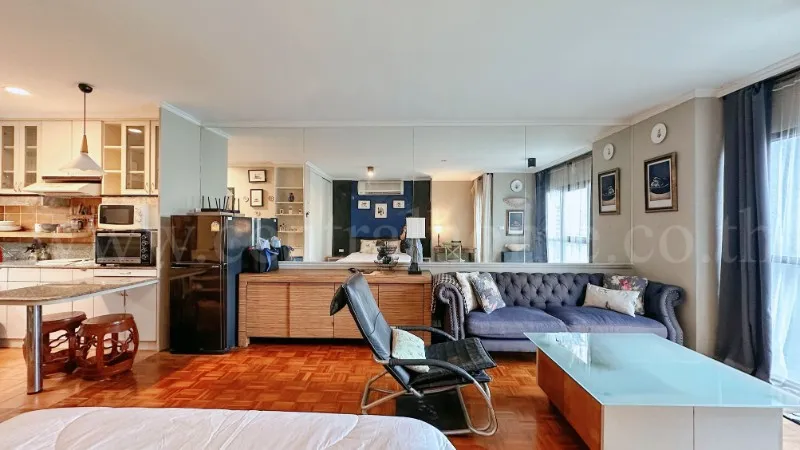 - 1 ห้องนอน, 1 ห้องน้ำ, 1 ห้องรับแขก, 1 ห้องครัว