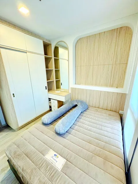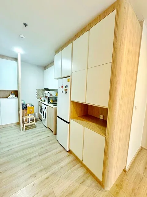 ภายในห้องตกแต่ง Fully Furnish พร้อมเครื่องปรับอากาศ เฟอร์นิเจอร์บิ้วอินครบทั้งห้องนั่งเล่น ห้องนอน และห้องครัว เพิ่มพื้นที่จัดเก็บได้อย่างลงตัว