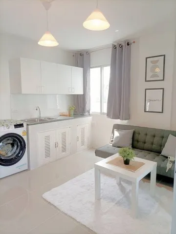 พร้อมเครื่องใช้ไฟฟ้า เครื่องปรับอากาศ 1 เครื่อง เครื่องทำน้ำอุ่น ตู้เย็น เครื่องซักผ้าฝาหน้า ทีวี ไมโครเวฟ