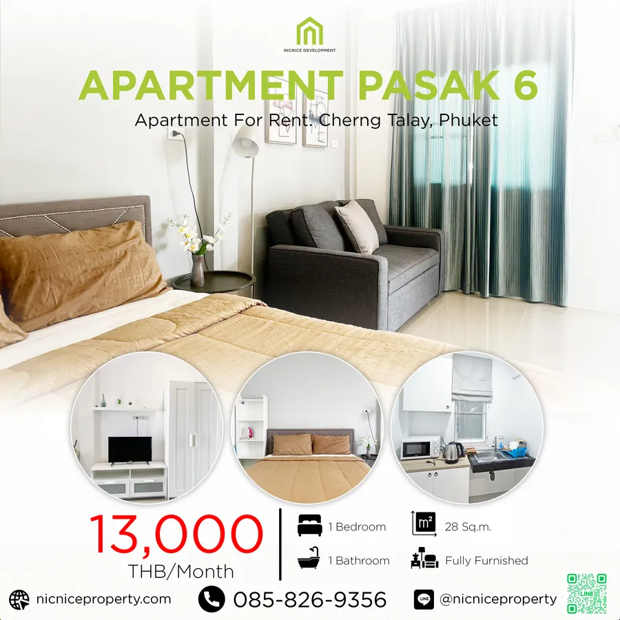 ⚡️ ปล่อยห้องอพาร์ทเม้นท์ให้เช่า เชิงทะเล, ภูเก็ต 📍ป่าสักซอย6 เชิงทะเล, ภูเก็ต 🏷ราคา 13,000.-/เดือน สัญญา 1ปี📝 🔸 1 ห้องนอน 🔸 1 ห้องน้ำ 🔸 1 ห้องครัว 🔸 เตียง 5 ฟุต 🔸 ขนาด 28ตร.ม. 🔸 เฟอร์นิเจอร์ครบ เตียง, โซฟาเบด, แอร์, แอนดรอยทีวี, เครื่องทำน้ำอุ่น, ไมโครเวฟ, เตาไฟฟ้า, ตู้เย็น สิ่งอำนวยความสะดวก: ✅ กล้องวงจรปิด ✅ ฟรีอินเตอร์เน็ต ✅ คีย์การ์ด ทำเลที่ตั้ง: 🔸 5 นาทีถึง โบ๊ทอเวนิว 🔸 10 นาทีถึง หาดบางเทา 🔸 10 นาทีถึง ลากูน่า 🔸 15 นาทีถึง หาดสุรินทร์ 🔸 20 นาทีถึง สนามบินภูเก็ต 🔸 40 นาทีถึง เมืองภูเก็ต ﹌﹌﹌﹌﹌﹌﹌﹌﹌﹌﹌﹌﹌﹌﹌ ⚡️Room For Rent Apartment Choeng Thale Phuket⚡️ 📍Pasak Soi 6 Choeng Thale Phuket 🏷Price 13,000.-/Month 1 Year Contract📝 🔸 1 Bedroom 🔸 1 Bathroom 🔸 1 kitchen 🔸 Bed 5 ft 🔸 28 sq.m. 🔸 Fully furnished Bed, Sofa bed, AC, Android TV, Aater Heater, Microwave, Electric Stove, Refrigerator facilities: ✅ CCTV ✅ Free Internet ✅ key card Prime location: 🔸 5 mins to Boat Avenue 🔸 10 mins to Bangtao beach 🔸 10 mins to Laguna 🔸 15 mins to Surin Beach 🔸 20 mins to Phuket Airport 🔸 40 mins to Phuket Town ﹌﹌﹌﹌﹌﹌﹌﹌﹌﹌﹌﹌﹌﹌﹌ ติดต่อสอบถามได้ที่ For more information, please contact 👉🏻Facebook : Nicnice Property ขาย/เช่า/ซื้อ บ้านคอนโดที่ดินภูเก็ต 👉🏻Line ID : @nicniceproperty 👉🏻Tel. : 0858269356 ﹌﹌﹌﹌﹌﹌﹌﹌﹌﹌﹌﹌﹌﹌﹌ #Apartment #Apartmentforrent #CheapApartment