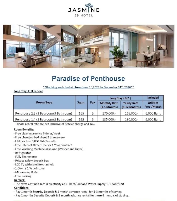 ประเภทห้อง Penthouse และ Duplex (ชั้นสูงสุด)