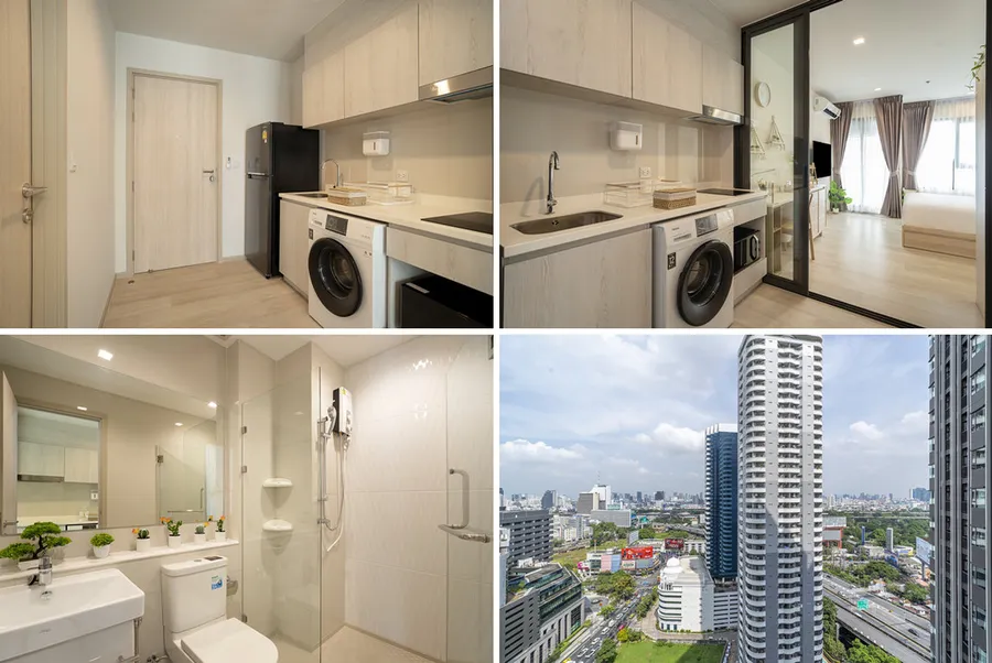 - ห้องสวย 28 ตารางเมตร แบบสตูดิโอ ชั้น24 วิวเมืองโล่งๆ ตกแต่งให้ครบ