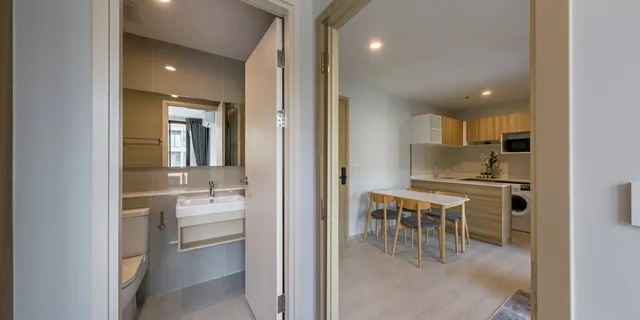 a new condo 35 sq m. This 2-bedroom on Vibhavadi Rangsit Road Phahonyothin 79 Nue Connex Donmueang located near Don Mueang Airport, convenient for both car and train travel. , 1-bathroom unit is on the 7th floor of Building C7. Rent is 12,998-13,499 baht per month. The room is ready to move in. The atmosphere is quiet and private, with a large common area of the project.