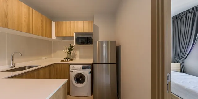 a new condo 35 sq m. This 2-bedroom on Vibhavadi Rangsit Road Phahonyothin 79 Nue Connex Donmueang located near Don Mueang Airport, convenient for both car and train travel. , 1-bathroom unit is on the 7th floor of Building C7. Rent is 12,998-13,499 baht per month. The room is ready to move in. The atmosphere is quiet and private, with a large common area of the project.
