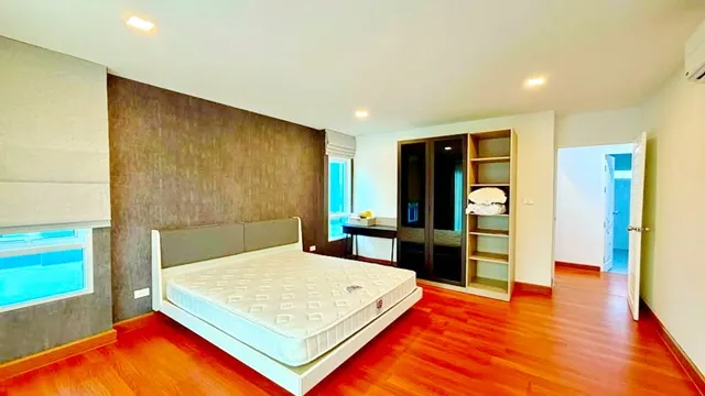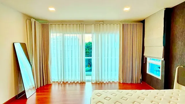 มีเครื่องทำน้ำอุ่น ม่าน 2 ชั้น และพื้นที่สวนรอบบ้านพร้อมหญ้าเทียม