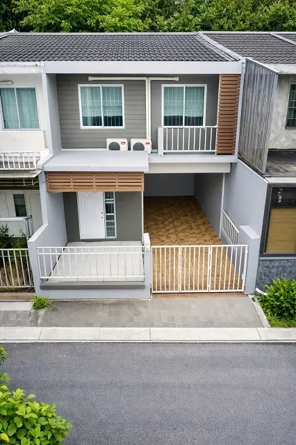 บ้านอยู่ตรงข้ามสวนหย่อมหมู่บ้าน ไม่ชนกับบ้านหลังอื่น
