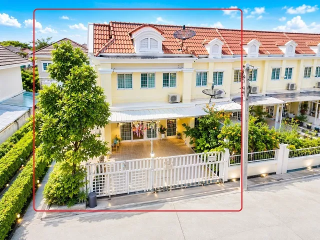 Nawamin161-165 5.5m.wide Two-story corner townhome Nuanchan 54-58 Ramintra Expressway. 3bed 2bath near Plearnary Mall 900m. spacious and airy 32sq.wa. 380 sq.m. 19,998 THB per month selling price 4.1 million THB fully functional includes some furniture side area for gardening private and peaceful atmosphere located in Nuanchan area near Pho Suwan Market 1.2 km. BTS Skytrain and lifestyle amenities convenient access to Nuanchan and Ramintra roads