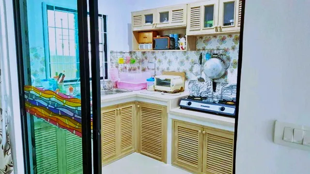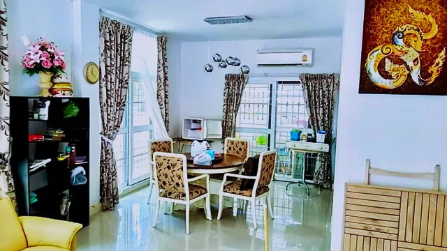 ห้องพระ ห้องนั่งเล่น ห้องอาหาร ครัวในบ้าน และครัวไทยนอกบ้าน เหมาะสำหรับครอบครัวหรือทำโฮมออฟฟิศ
