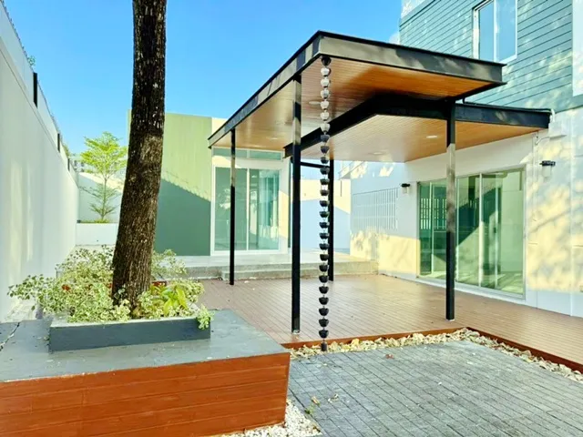 พื้นที่ภายนอกจัดสวน พร้อมมุมพักผ่อนด้านข้างและหลังบ้าน