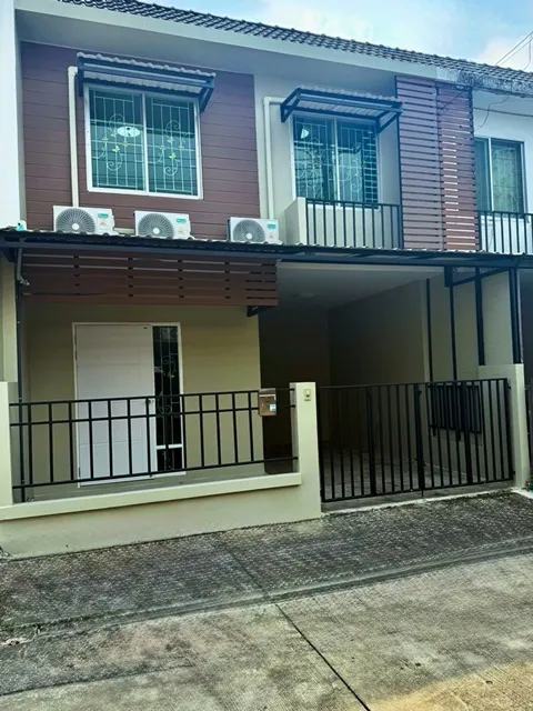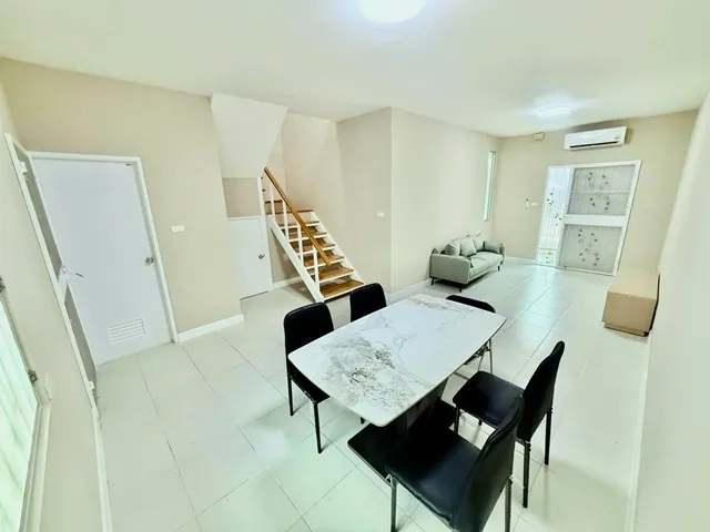 900 m. from Kasetsart University and The Jas Wanghin BTS Kasetsart University 2 km. Townhouse for sale or rent 2 stories 3 bed 2 bath Land area 25 sq.wa. usable area 200 sq.m. New home Rental 18,999 THB per month Sale price 3.55 million THB Located in Ladprao quiet private suitable for residence or home office with easy access to Kaset Nawamin and Ramintra roads