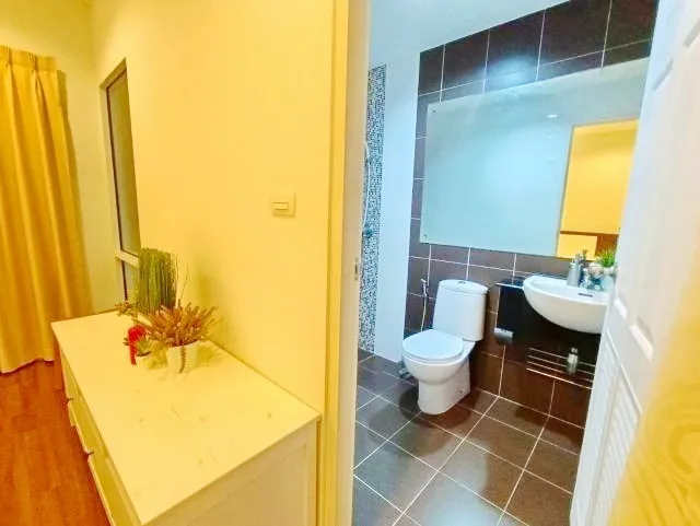 มี 3 ห้องนอน 3 ห้องน้ำ พร้อมเคาน์เตอร์ครัว และพื้นที่นั่งเล่นเป็นสัดส่วน