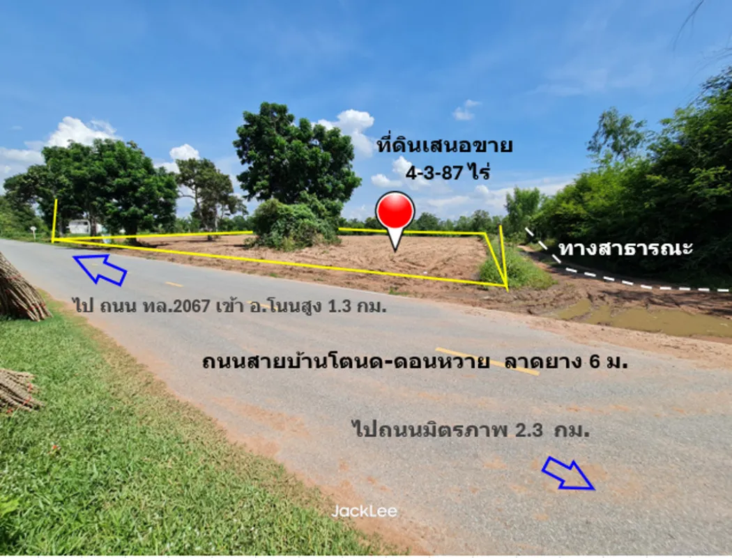 ขาย ที่ดิน อ.โนนสูง บ.ดอนตะแบงพัฒนา ม.7 เนื้อที่ 4