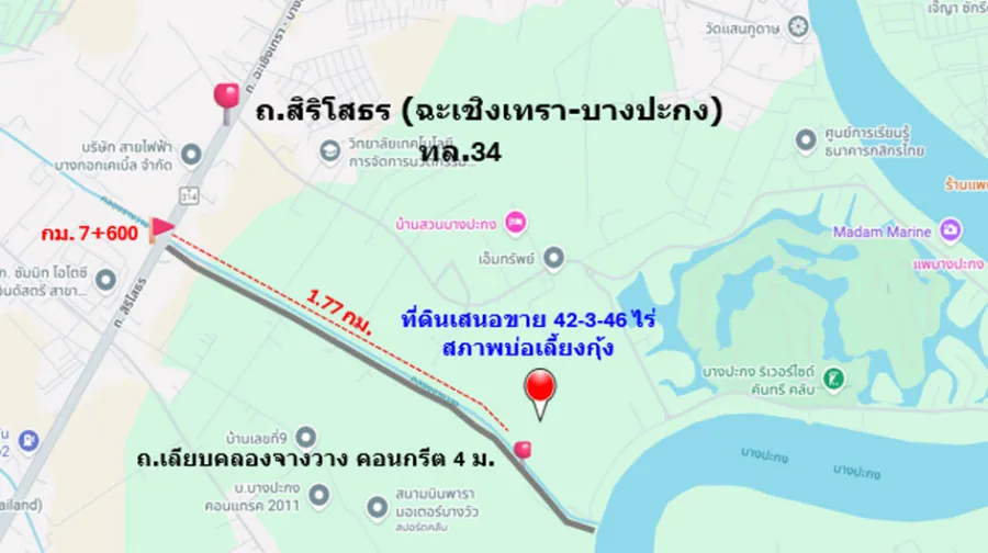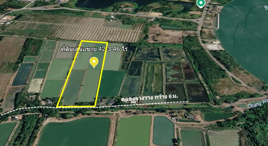 ขาย ที่ดิน ติดถนนเลียบคลองจางวาง ใกล้แม่น้ำฯ อ.บ้านโพธิ์ 42 ไร่ 3 งาน 46 ตรว ติดโครงการบางปะกงริเวอร์ไซด์ พร้อมโอน ฟรีค่าโอน ราคายุติธรรม