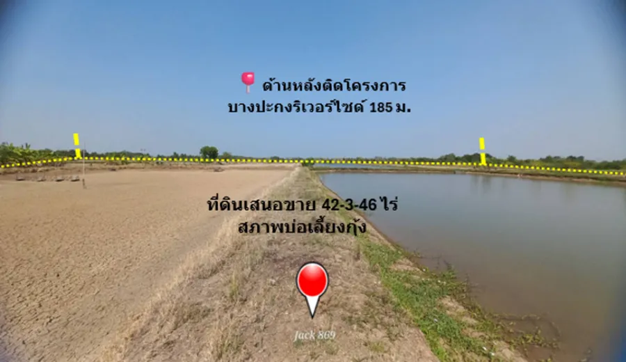 ด้านหลังที่ดินติดโครงการบางปะกงริเวอร์ไซด์คันทรีคลับ 185 เมตร