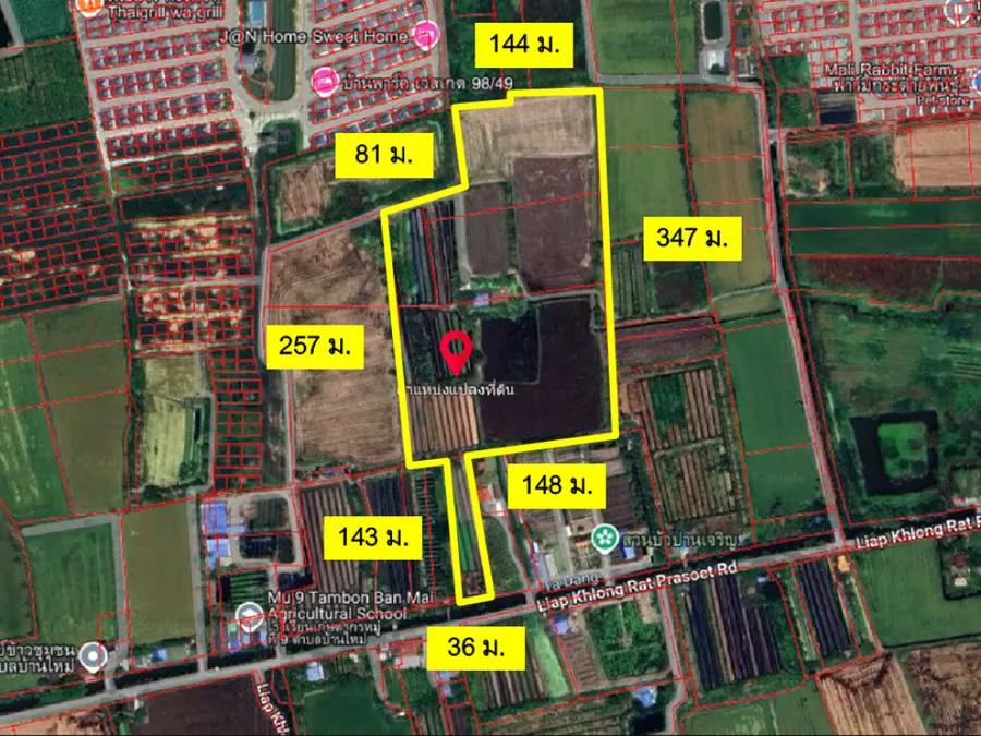 ขายที่ดินแปลงใหญ่ 43-2-37 ไร่ ติดถนนเลียบคลองรัฐประเสริฐ ทำเลทองบางใหญ่ ใกล้เซ็นทรัลเวสต์เกต เหมาะพัฒนาโครงการจัดสรร ราคาพิเศษเพียง 12,500 บาท/ตร.ว. รวมทั้งแปลงเพียง 217,962,500 บาท เท่านั้น! จุดเด่นที่นักลงทุนไม่ควรพลาด •ที่ดินขนาดใหญ่ หายาก เหมาะสำหรับพัฒนาเป็นโครงการหมู่บ้านจัดสรร รีสอร์ต หรือกิจการเชิงพาณิชย์ •ติดถนนเลียบคลองรัฐประเสริฐ หน้ากว้างประมาณ 36 เมตร •ถนนปัจจุบันกว้างประมาณ 5 เมตร และมี พื้นที่ริมถนนฝั่งเสาไฟฟ้า ที่สามารถขยายได้เพิ่มอีกประมาณ 1–3 เมตร มีศักยภาพขยายรวมได้ถึง 6–8 เมตร รองรับถนนโครงการขนาดกลางถึงใหญ่ •แปลงลึกกว่า 500 เมตร ใช้พื้นที่ได้เต็มประสิทธิภาพ •ใกล้แหล่งชุมชนและโครงการหมู่บ้านจัดสรร ในโซนที่มีการเจริญเติบโตต่อเนื่อง •เชื่อมต่อ ถนนเลียบคลองประปา, บางใหญ่, และ เซ็นทรัลเวสต์เกต ได้สะดวกในไม่กี่นาที •ผังเมือง สีเขียว ก.2-12 เหมาะสำหรับโครงการที่อยู่อาศัยแนวราบ รายละเอียดที่ดิน •เนื้อที่รวม: 43 ไร่ 2 งาน 37 ตารางวา (17,437 ตารางวา) •หน้ากว้างติดถนน: ประมาณ 36 เมตร •ลึกโดยรวม: ประมาณ 500 เมตร •มีคลองอยู่ท้ายแปลง (ช่วยระบายน้ำและเพิ่มมูลค่า) •ทางเข้าแปลงผ่านสะพานเหล็ก (สามารถปรับปรุง/ขยายให้เหมาะกับโครงการได้) พิกัดที่ดิน: http://maps.google.com/maps?q=13.864981,100.342353 สถานที่ใกล้เคียง •ถ.เลียบคลองประปา •ถ.บางใหญ่ •เซ็นทรัล เวสต์เกต •โรงเรียนราชวินิต นนทบุรี •โรงเรียนชุมชนวัดต้นเชือก •โรงเรียนบ้านดอนตะลุมพุก •ตลาดสด และแหล่งการค้า สนใจติดต่อ ภาณุวัฒน์ โทร. 081-698-5433 Line ID: @363ykwoi รับฝากขายอสังหาริมทรัพย์ทุกประเภท — บริการครบวงจรจนถึงวันโอน รับซื้อบ้าน ที่ดิน คอนโด ที่ต้องการขายด่วน! ที่ดินบางใหญ่ | ขายที่ดินนนทบุรี | ที่ดินจัดสรร | ที่ดินติดคลอง | ที่ดินแปลงใหญ่ | ที่ดินใกล้เวสต์เกต | ที่ดินติดถนน | land for housing project | invest in land Nonthaburi | ที่ดินเปล่า | ที่ดินพัฒนาโครงการ