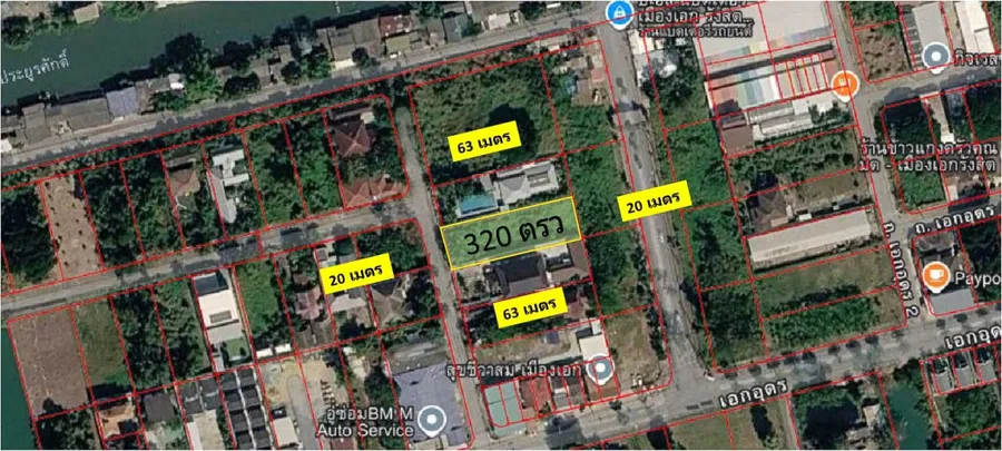 ขาย ที่ดินเปล่า เมืองเอก รังสิต สีชมพู ปทุมธานี ใกล้มหาลัยรังสิต เหมาะทำบ้านพักอาศัย 320 ตรว