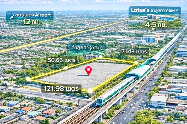 เหมาะลงทุน ที่ดินถมแล้วให้เช่า รถไฟฟ้า BTSคูคต 500ม.ใกล้คลองสอง โกดัง โลจิสติกส์ ขนาด 5 ไร่ ลำลูกกา21-27