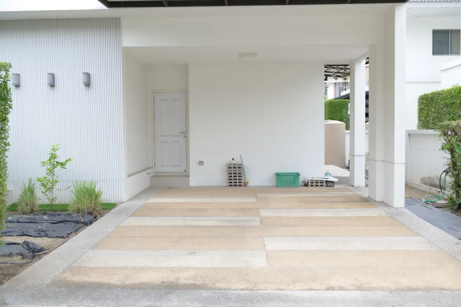 - ต่อเติมหลังคาสำหรับทำโรงจอดรถเรียบร้อย จอดรถได้ 2 คัน
