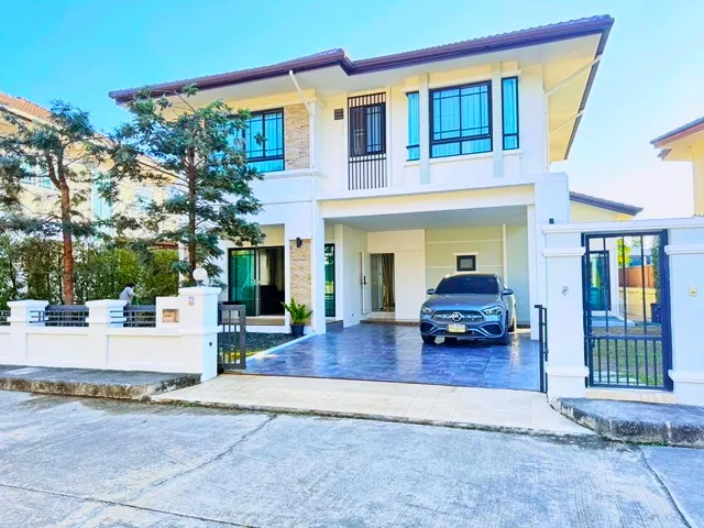 จอดรถในบ้านได้ 2 คัน พร้อมห้องเล็กนอกตัวบ้านสำหรับแม่บ้านหรือเก็บของ