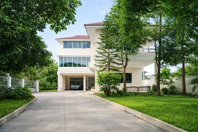 พื้นที่จอดรถรองรับได้หลายคัน บริเวณบ้านกว้าง